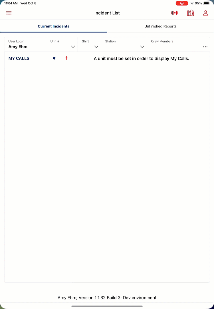 To get Incidents to display in the MY CALLS view, the user must set their Unit's Call Sign, and then all calls that have that unit assigned will display in the MY CALLS list.